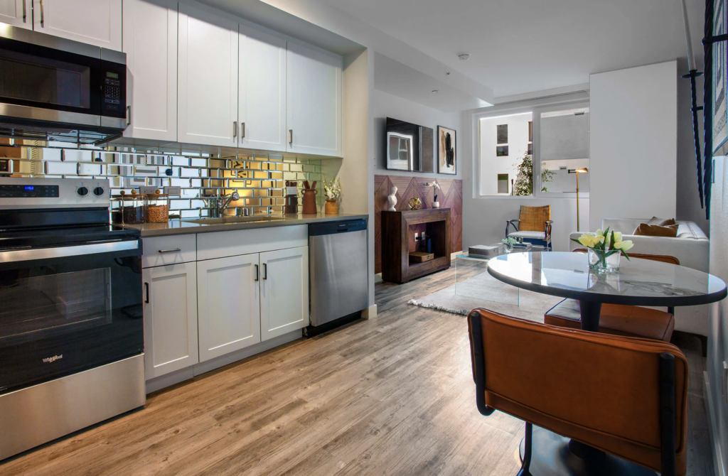 Beyond the interiors, Crenshaw Lofts delivers a full lifestyle experience through a range of premium amenities. Residents have access to a fully equipped fitness center featuring high-end Precor equipment and a red light sauna, along with a dedicated business center for remote work and productivity. The property also includes a resident lounge, outdoor movie theater, and BBQ grilling areas—spaces intentionally designed to foster connection and community.