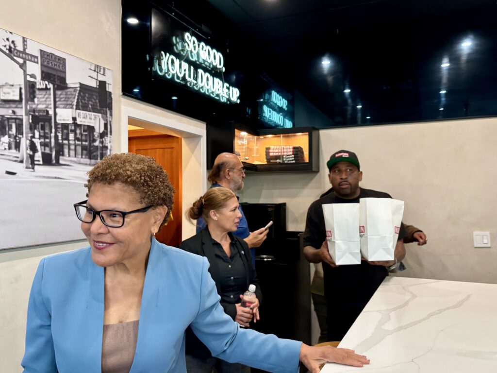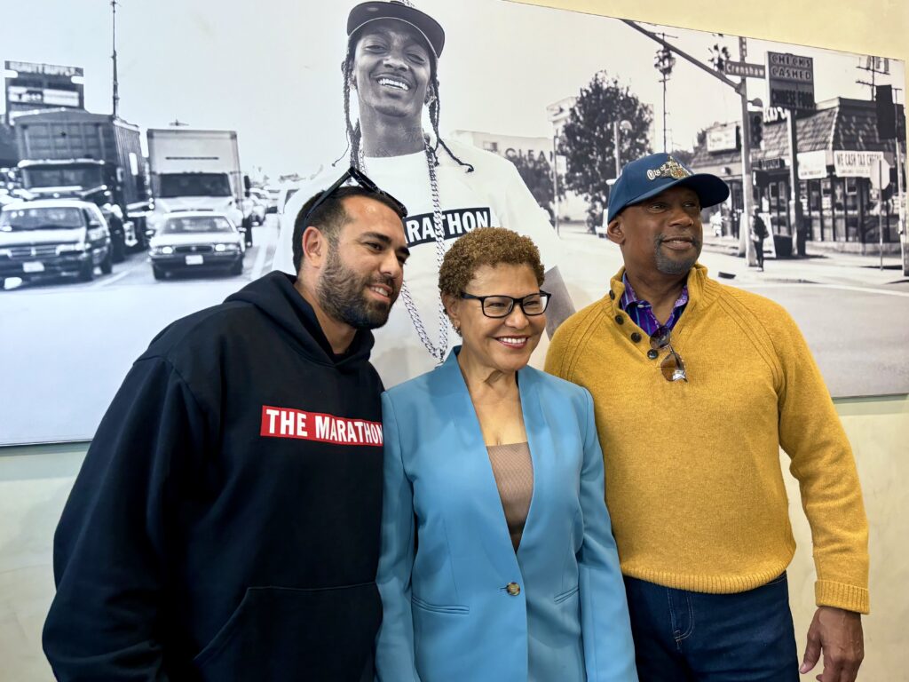 Los Angeles,CA–Mayor Karen Bass recently visited The Marathon Burger, a new eatery that extends the legacy of the late rapper Nipsey Hussle. The burger stand is part of Hussle’s iconic Marathon brand, which includes his music, clothing line, and now food. The establishment is run by his brother, Samiel Asghedom—also known as Blacc Sam—and his business partner, Casey Parker.