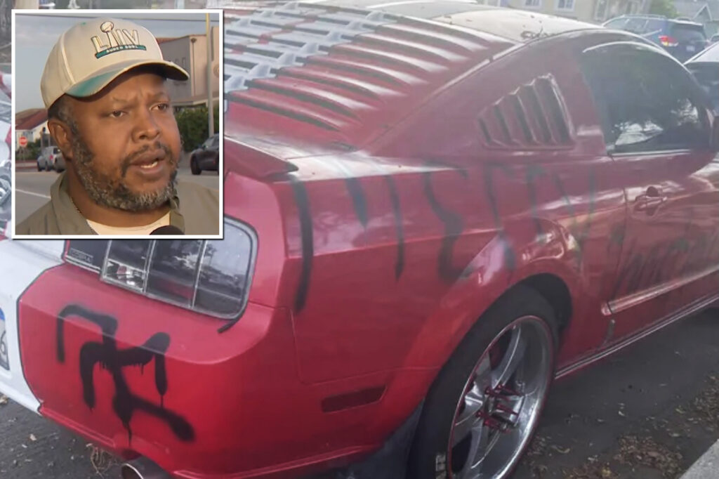 “I couldn’t believe this happened to me in San Pedro,” says Reginald Scott, the victim, expressing his disbelief. The disturbing event unfolded right before New Year’s Day, when Scott found his red Ford Mustang defaced with a large message: “Merry Christmas,” followed by an offensive racial slur, all painted in black spray paint. The other side of the car had indiscernible lettering, accompanied by swastikas on the bumper, and his tires were also slashed.