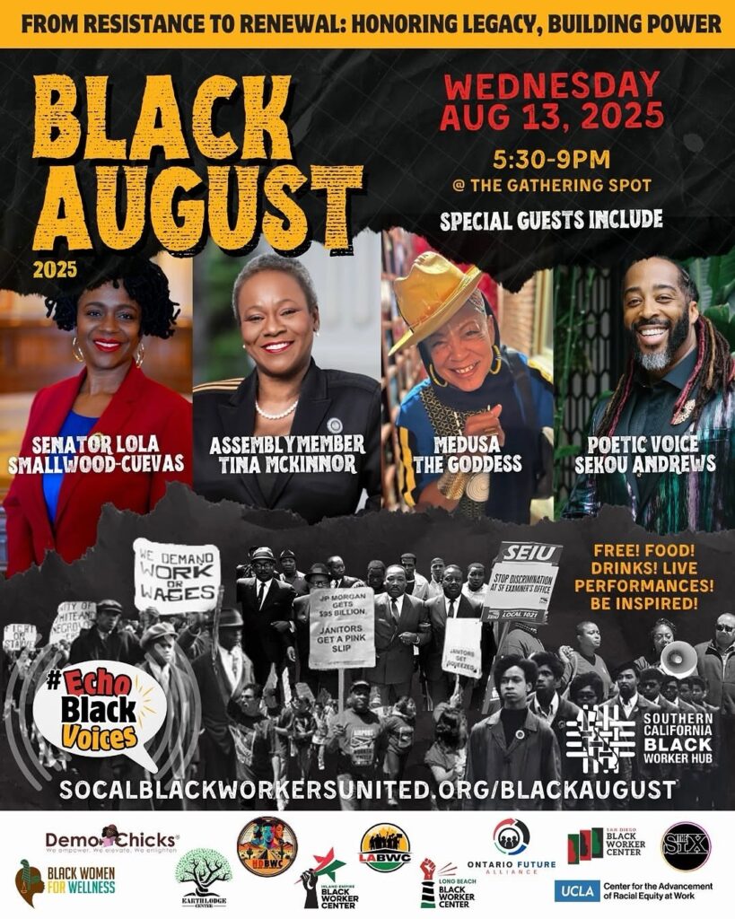 “Black August reminds us that we stand on the shoulders of giants. “Their sacrifices fuel our determination to build a Los Angeles where Black workers thrive, lead and live with dignity.”
