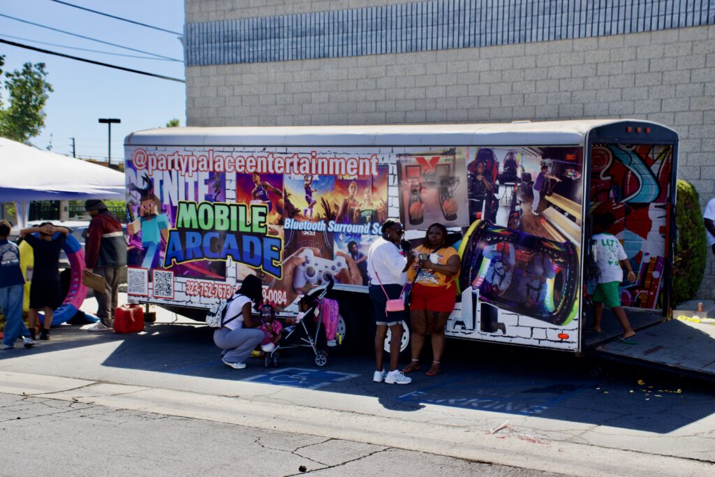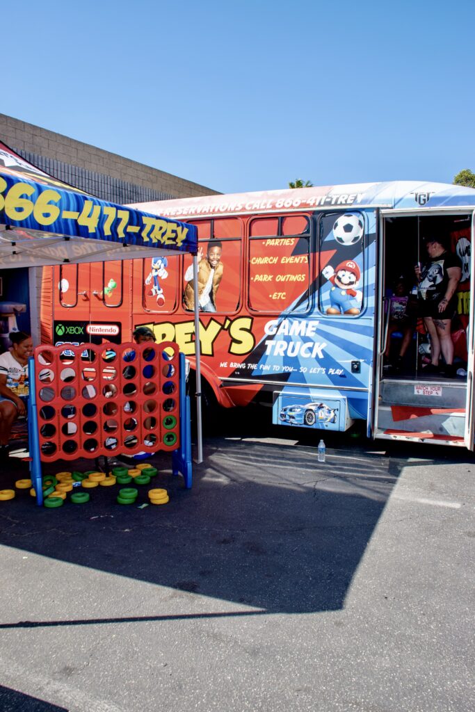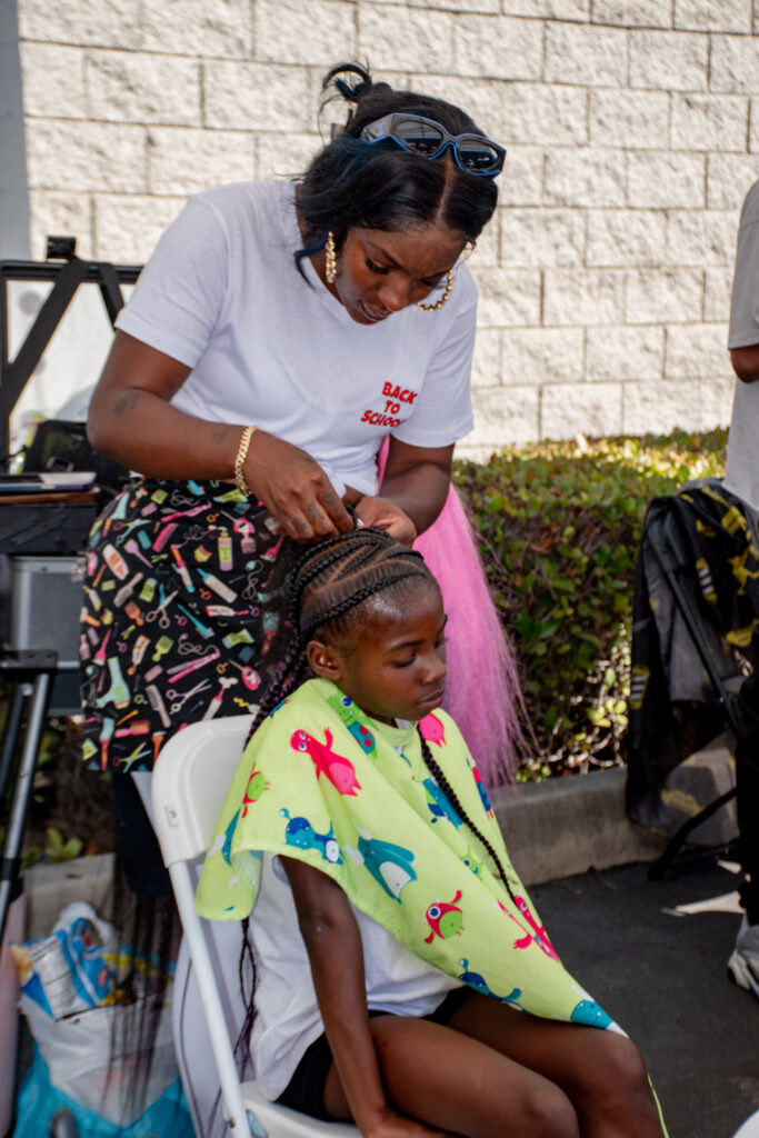 The event featured jumpers, carnival rides, interactive games, and activity booths that kept families engaged throughout the afternoon. Children received free haircuts, braiding services, and more than 100 pairs of brand-new shoes to start the school year prepared. Food vendors including Egg Roll Babe and Trap Kitchen offered complimentary meals, while kids enjoyed snow cones, popcorn, ice cream, and other treats. Face-painting stations, mobile game trucks and music created a festive block-party atmosphere. Clown dancers also arrived to get the kids dancing and hyped.